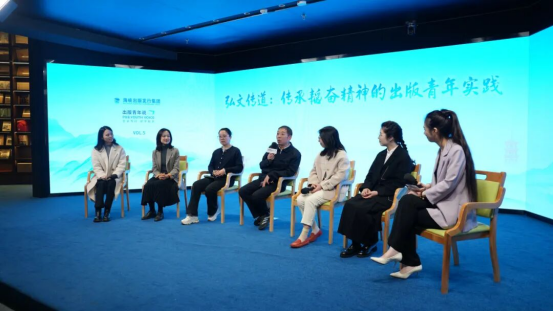 在交流互動環(huán)節(jié),成知辛和何欣兩位編審與4位青年主講人分享了各自挖掘、發(fā)現(xiàn)、培養(yǎng)青年作者的經(jīng)歷,共同探討了“如何把握社會效益與經(jīng)濟效益相統(tǒng)一”“如何構(gòu)建有溫度的讀者關系”等出版實踐中的熱點問題。在輕松融洽的氛圍中,青年們感受到前輩對出版事業(yè)的真摯情懷與深刻思考,也增進了對編輯這份事業(yè)的使命感與敬畏感,更加堅定了深耕內(nèi)容、服務大眾的初心。