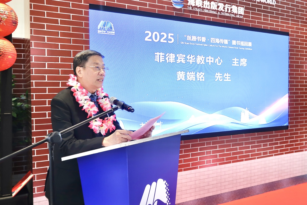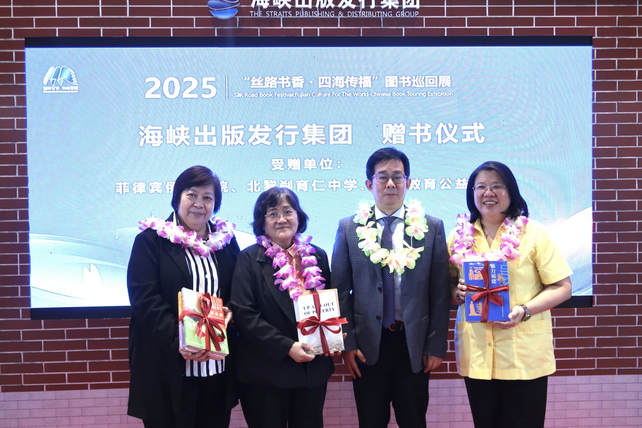 9月10日下午,由海峽出版發行集團與菲律賓華教中心聯合主辦的2025年“絲路書香 • 四海傳福”圖書巡回展啟動儀式在第46屆菲律賓馬尼拉國際書展二樓福建展館隆重舉行。中國駐菲律賓大使館教育參贊熊勝、海峽出版發行集團董事長黃葦洲、菲律賓華教中心主席黃端銘及菲律賓僑界僑領、華校師生代表等百余人出席活動,共同見證這一以書為媒的文化盛事。