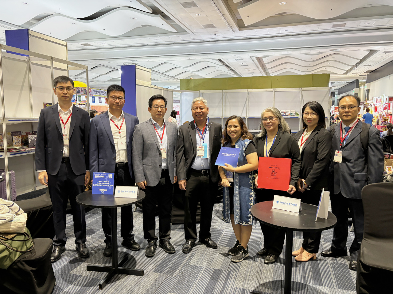 活動現場還舉行了捐贈和簽約儀式。海峽出版發行集團向中國駐菲律賓大使館、菲律賓華教中心贈送剪紙卷軸與德化瓷器,以福建非遺技藝傳遞“文化同源、友誼長存”的情誼;主辦方向菲律賓僑中學院、北黎剎育仁中學、博愛公益教育中心捐贈精品圖書;海峽出版發行集團所屬鷺江出版社、福建美術出版社分別與菲律賓華教中心簽訂圖書版權合作、“AI 藝術融合展”項目合作協議。在馬尼拉國際書展亞洲版權展,海峽出版發行集團展團還集中推介了集團重點圖書版權。