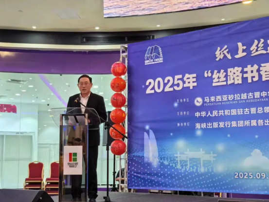 9月13日下午,2025年“絲路書香?四海傳福”圖書巡回展馬來西亞開幕式在砂拉越州古晉市舉行。本次活動由海峽出版發行集團與古晉中華文化藝術促進協會聯合主辦,馬來西亞砂拉越州古晉南市市長拿督黃鴻圣、中國駐古晉總領事館總領事邢偉平、海峽出版發行集團董事長黃葦洲和古晉中華總商會會長拿督陳日枝、晉漢連省華人社團總會秘書林亞德、古晉中華文化藝術促進協會會長許慶喜等各界嘉賓出席。