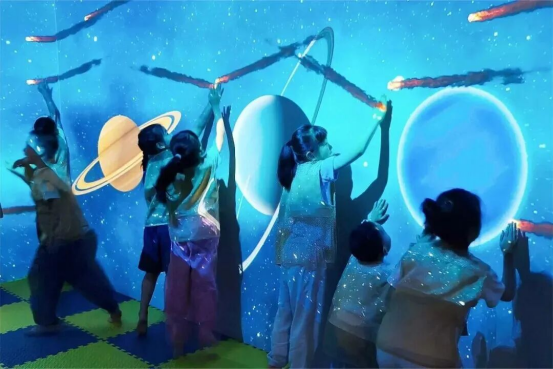2022年,重裝升級的福州市新華書店安泰中心書店以全國首家元宇宙書店的面貌正式亮相,打造了包含VR全景觀影區(qū)和MR互動體驗區(qū)的新閱讀體驗廳;2024年新增的光影故事屋更是憑借3D投影和雷達觸控技術,升級5G沉浸式閱讀體驗,真叫一個賽博朋克。